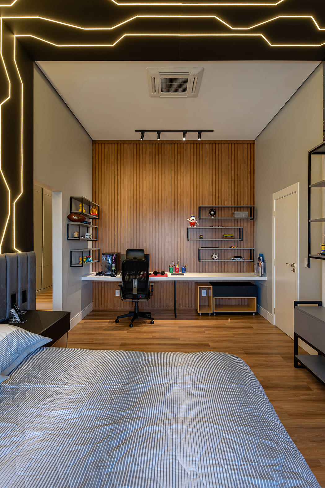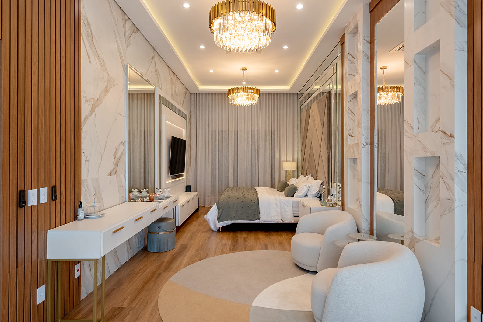 Revestimentos, móveis e iluminação planejados nos mínimos detalhes.